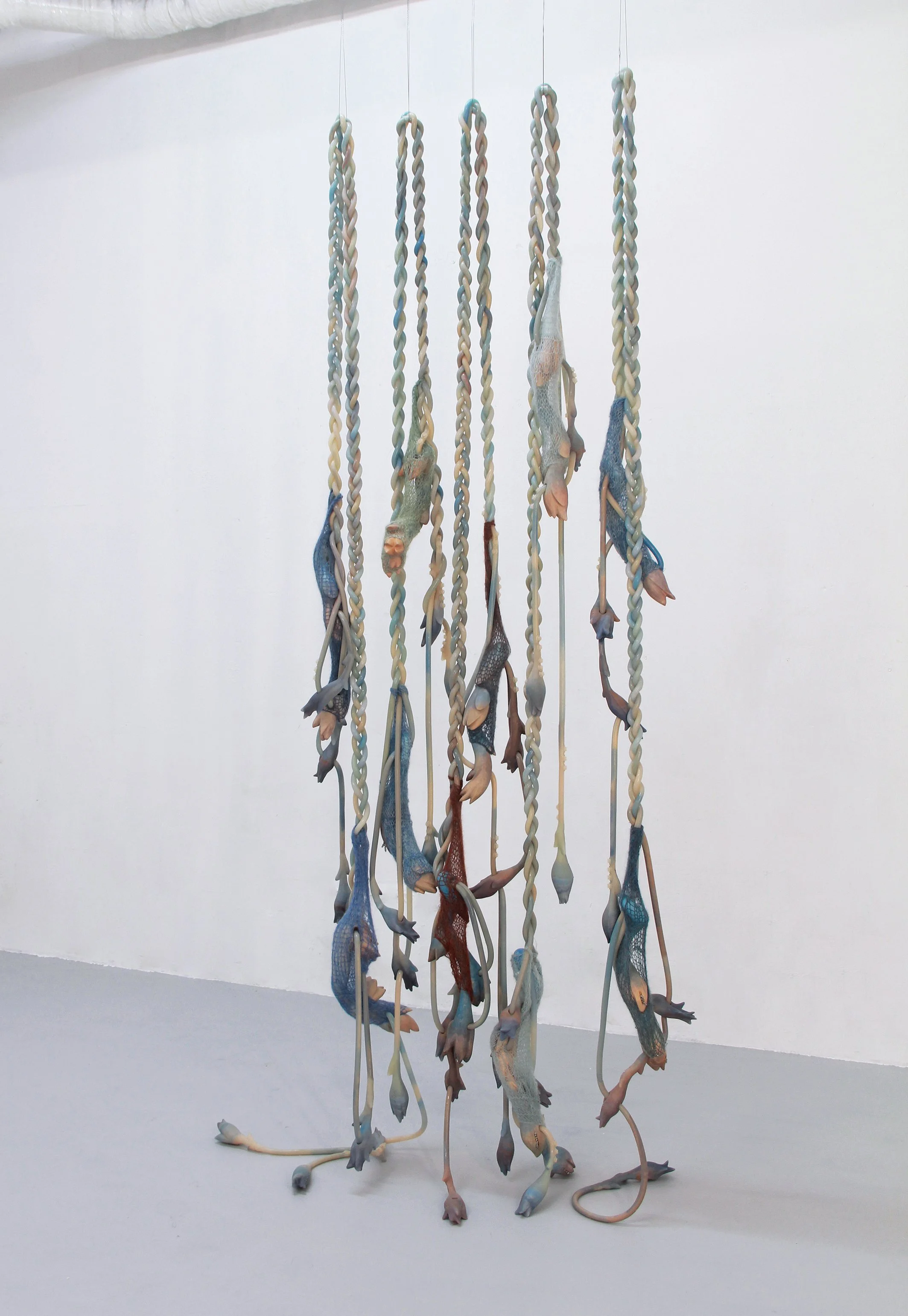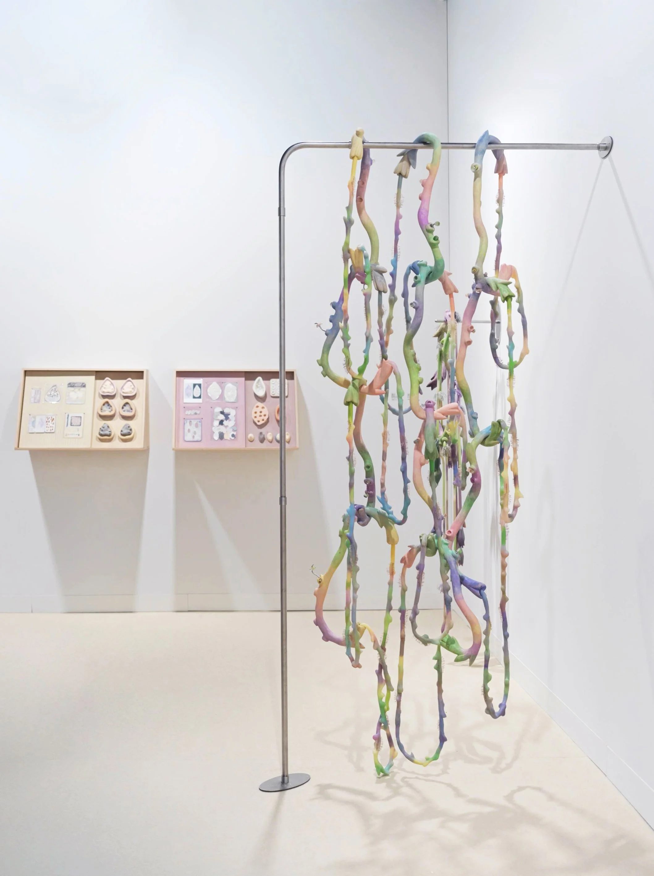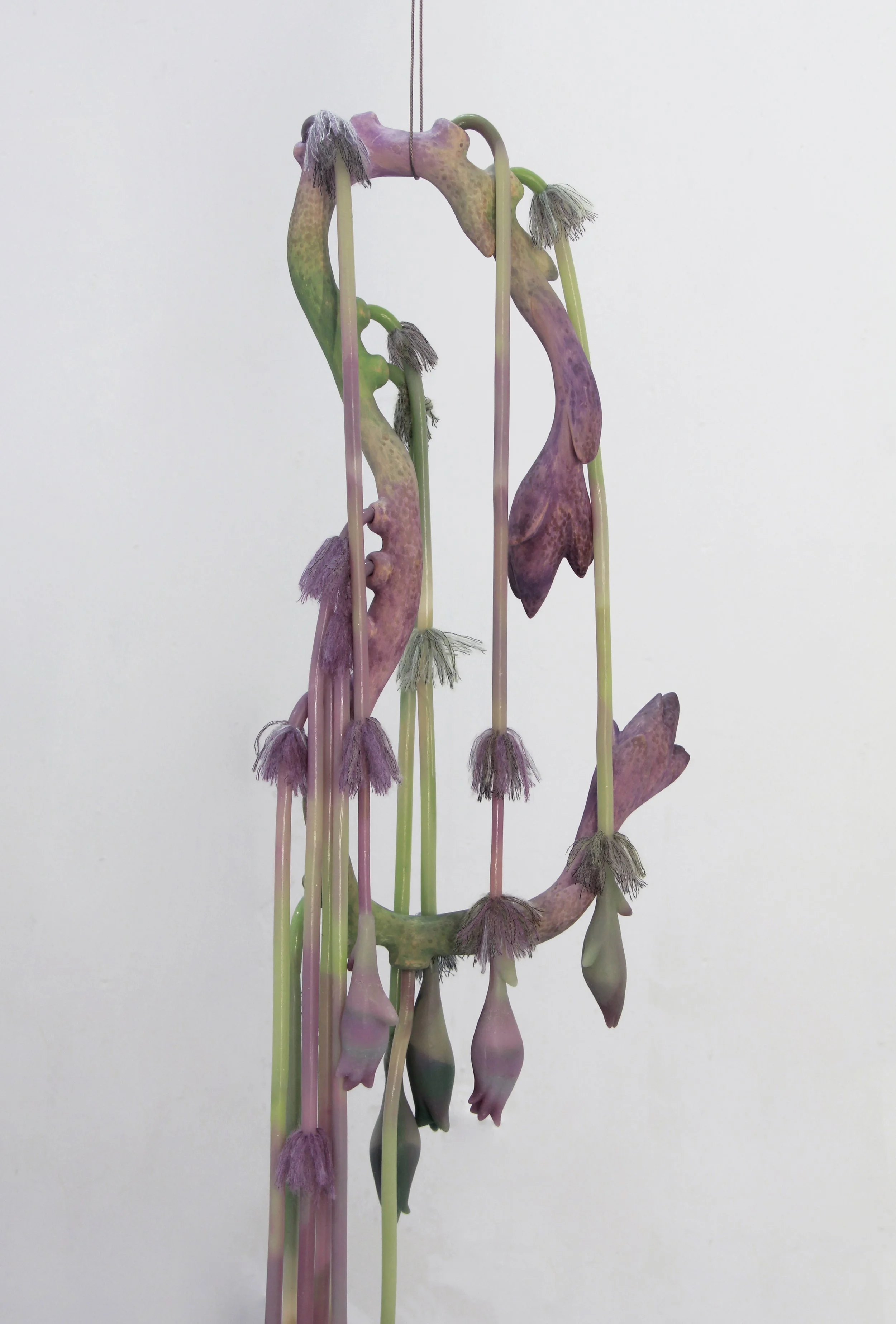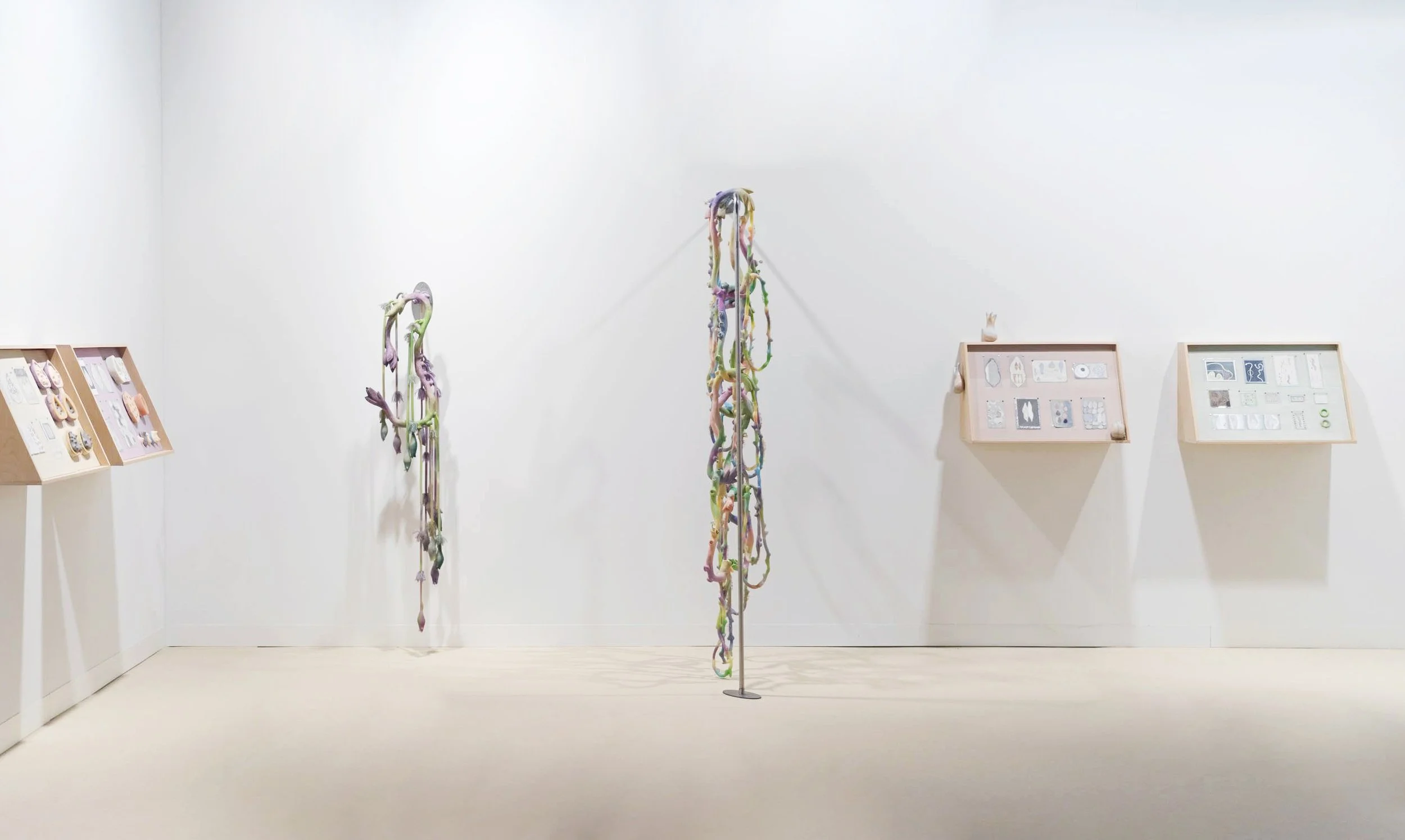 The forms of the works derive from organs and their appendages—such as haustoria, pistil, epidermis, skin, and secretions—which serve functions like contact with the external world, multiplication, information exchange, or nutrient absorption. Through details in form and material, each piece intertwines with the others like vines, weaving together and forming a symbiotic landscape.