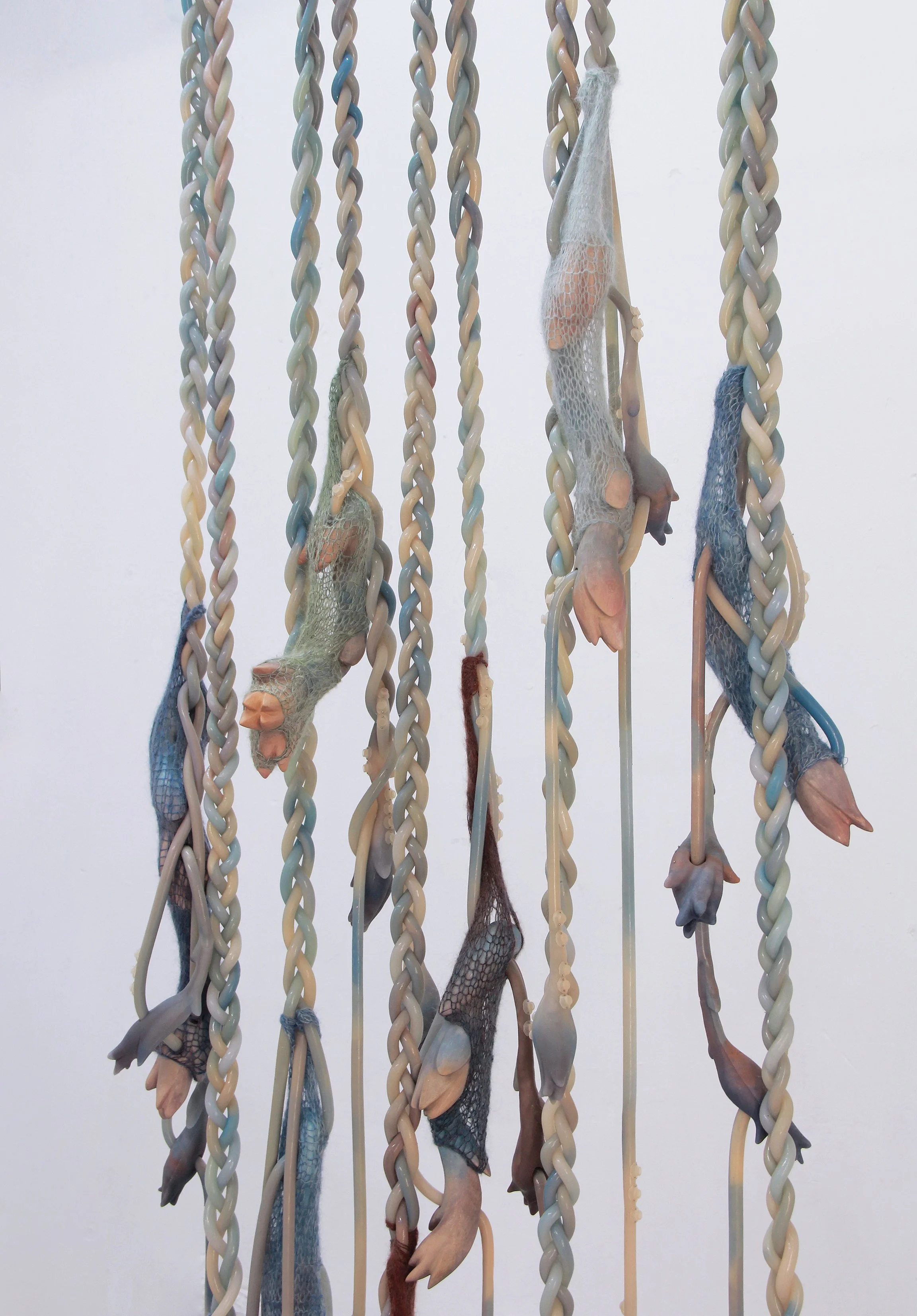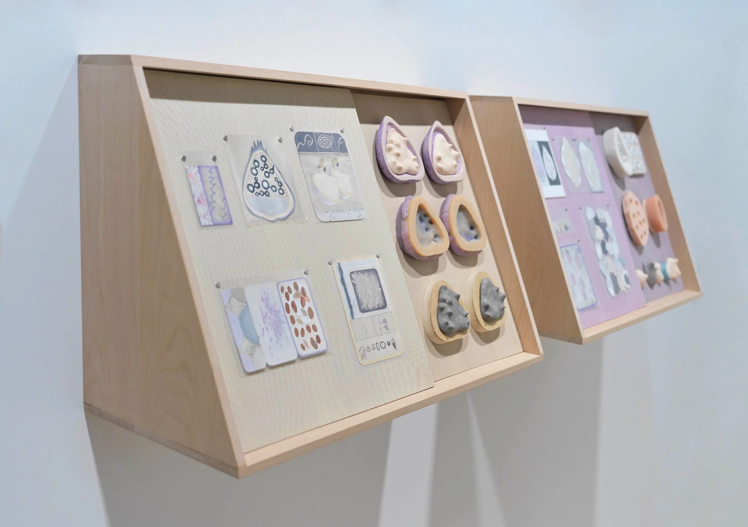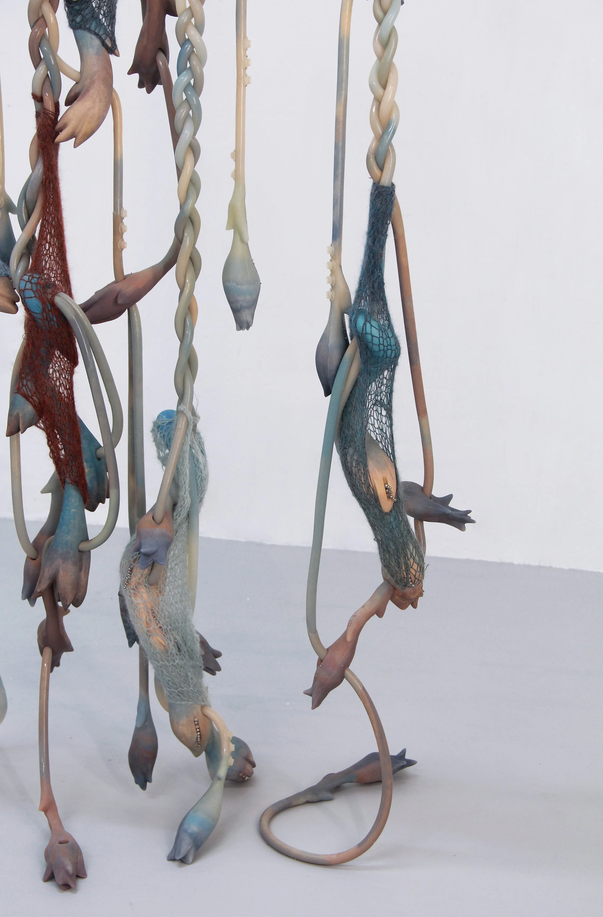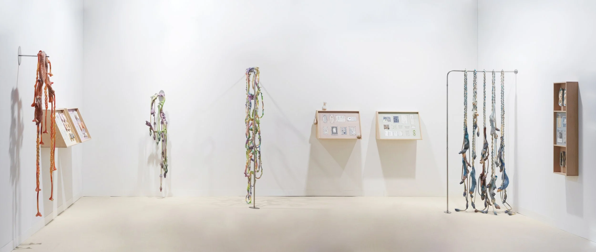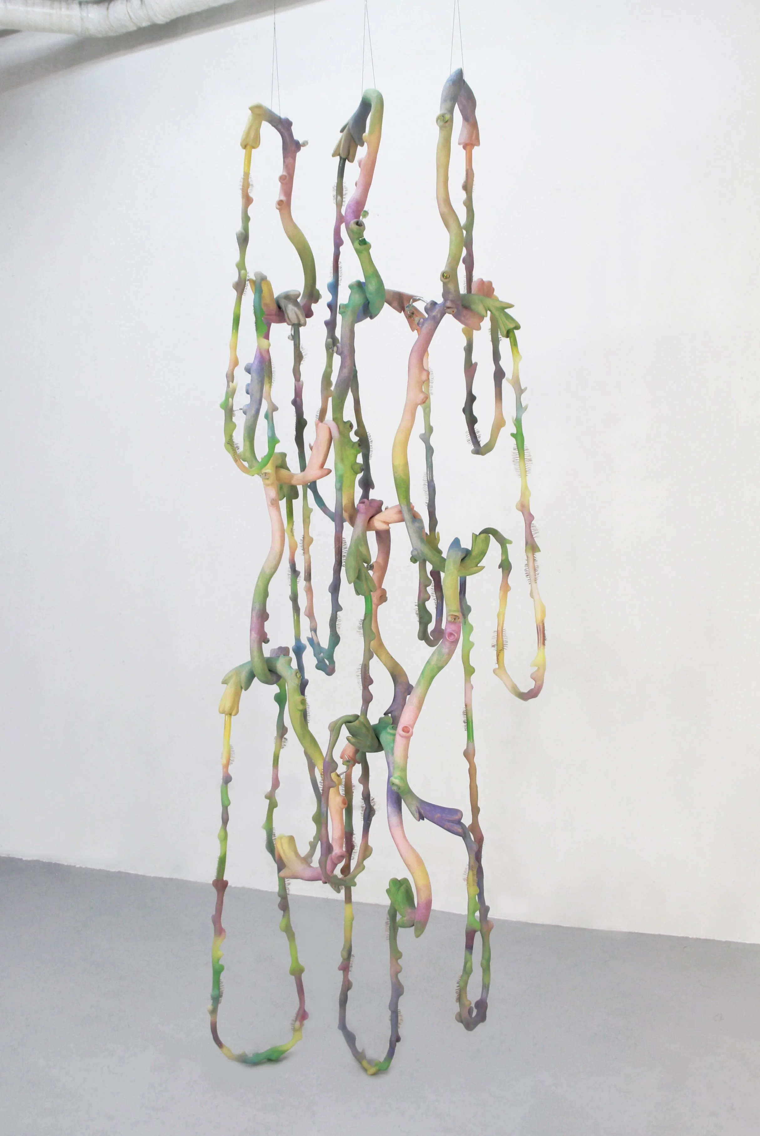 The forms of the works derive from organs and their appendages—such as haustoria, pistil, epidermis, skin, and secretions—which serve functions like contact with the external world, multiplication, information exchange, or nutrient absorption. Through details in form and material, each piece intertwines with the others like vines, weaving together and forming a symbiotic landscape.