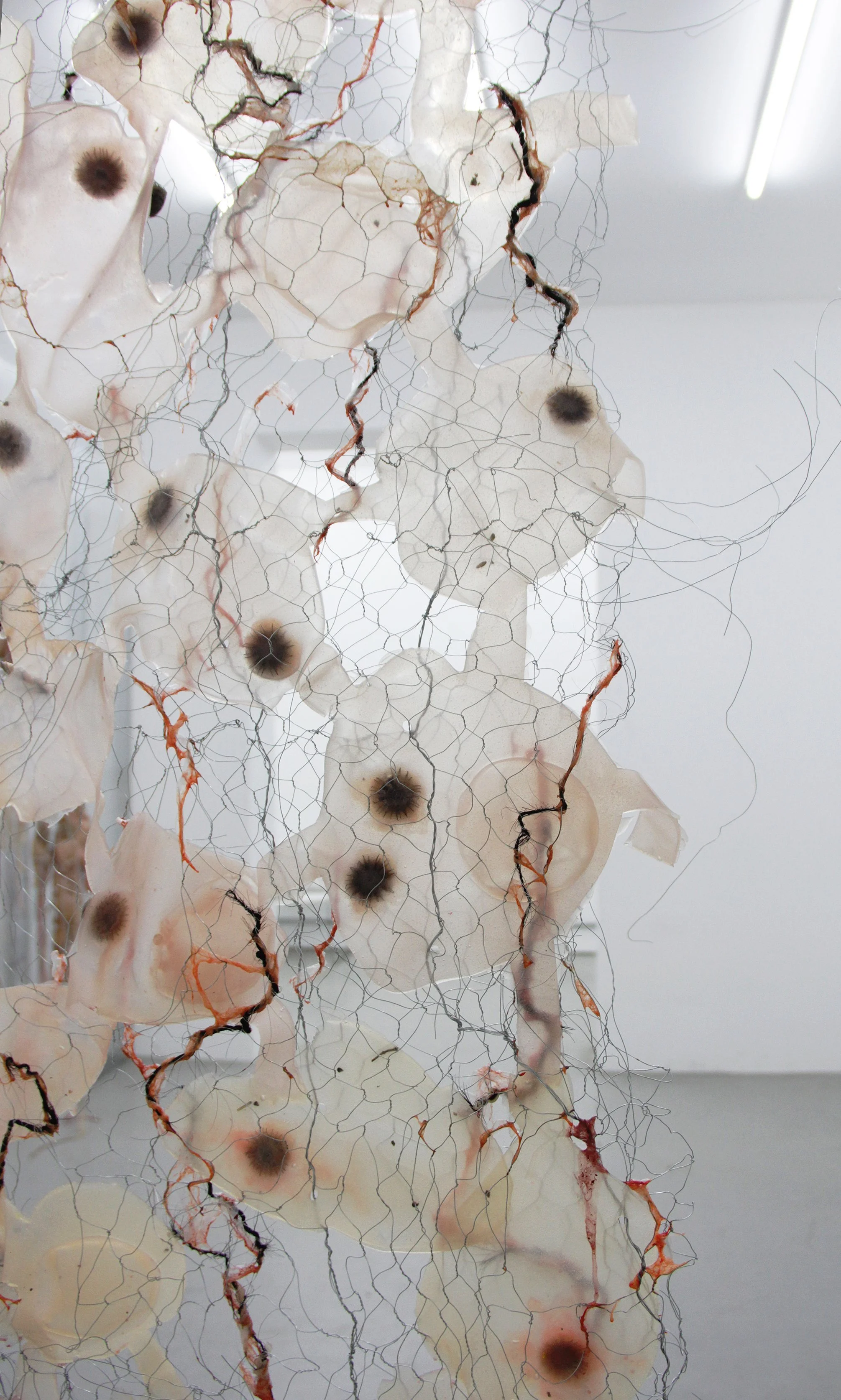 Silicone, iron wire, indian mallow shells, acrylic, hair, silk, water-soluble plastic