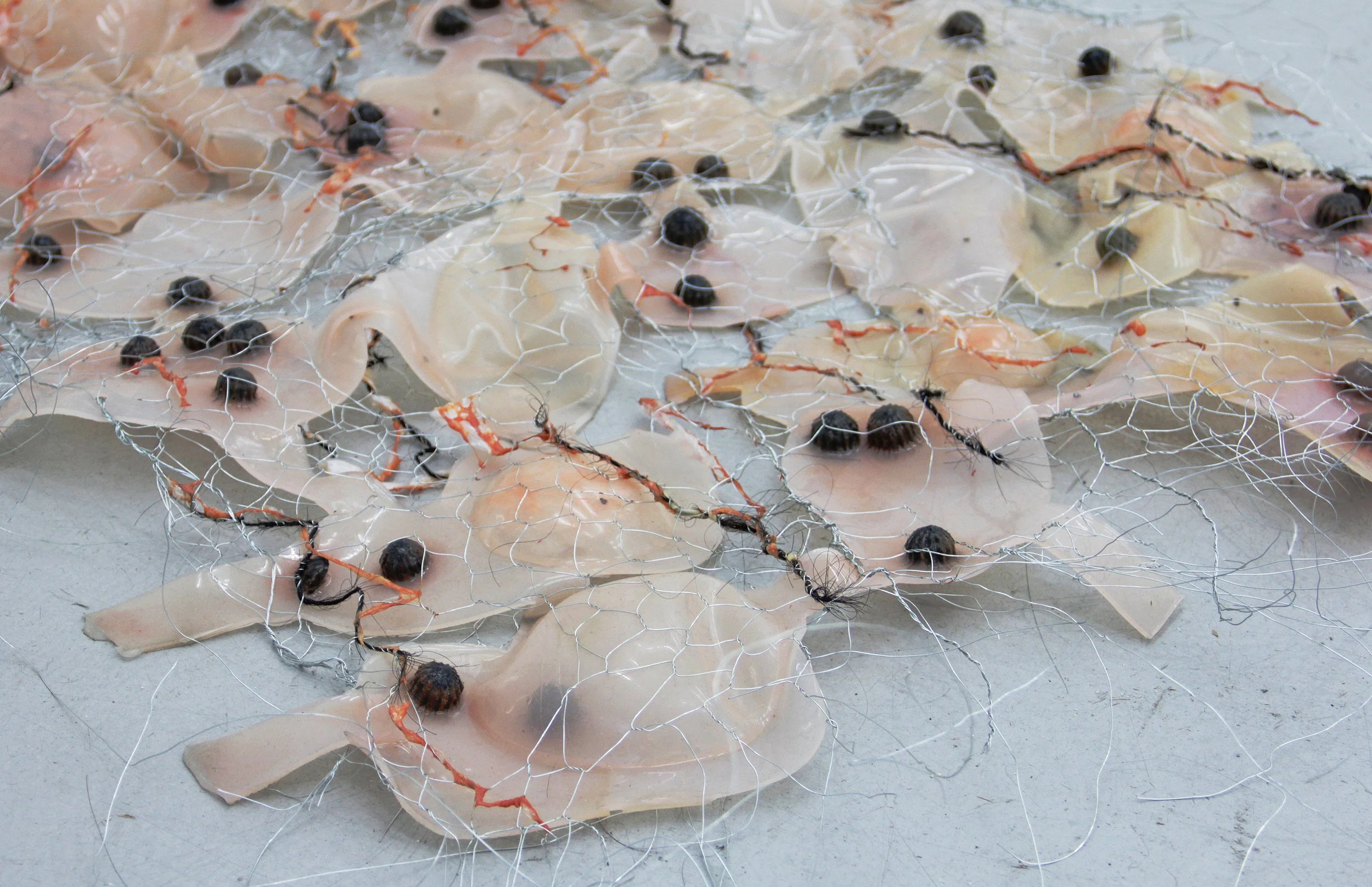 硅膠、鐵絲、錦葵種殼、丙烯、頭髮、蚕絲、水溶塑料