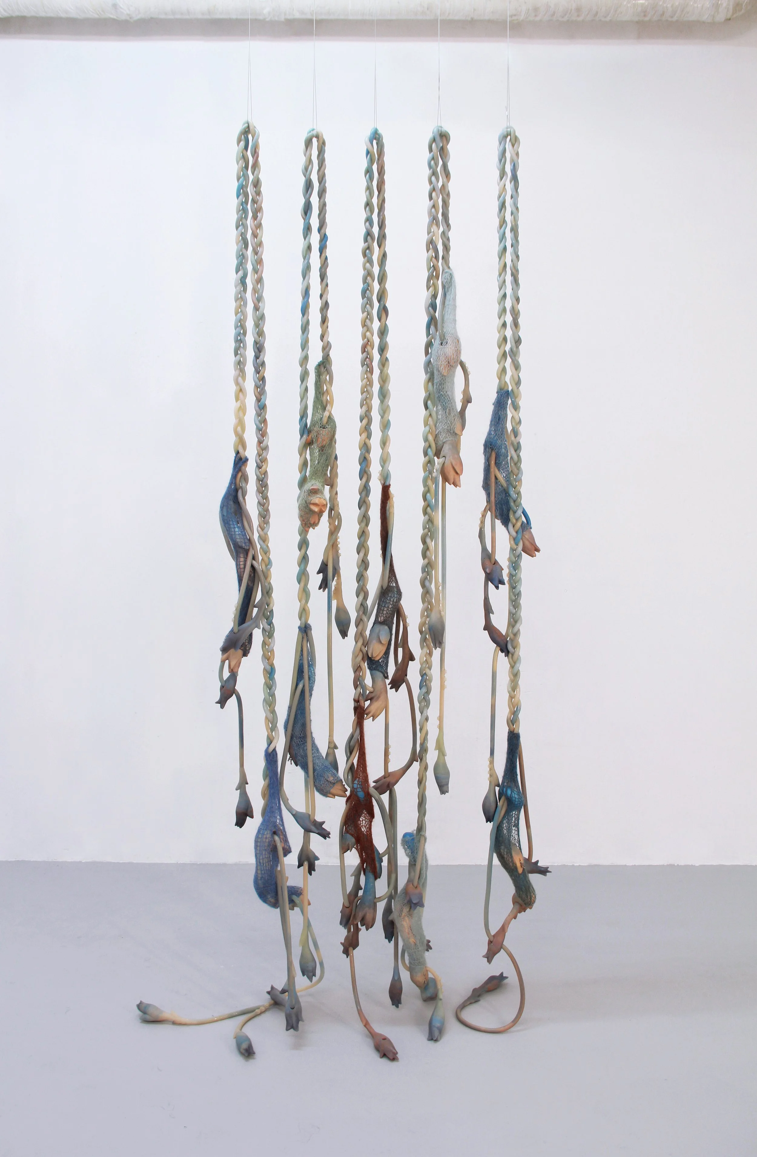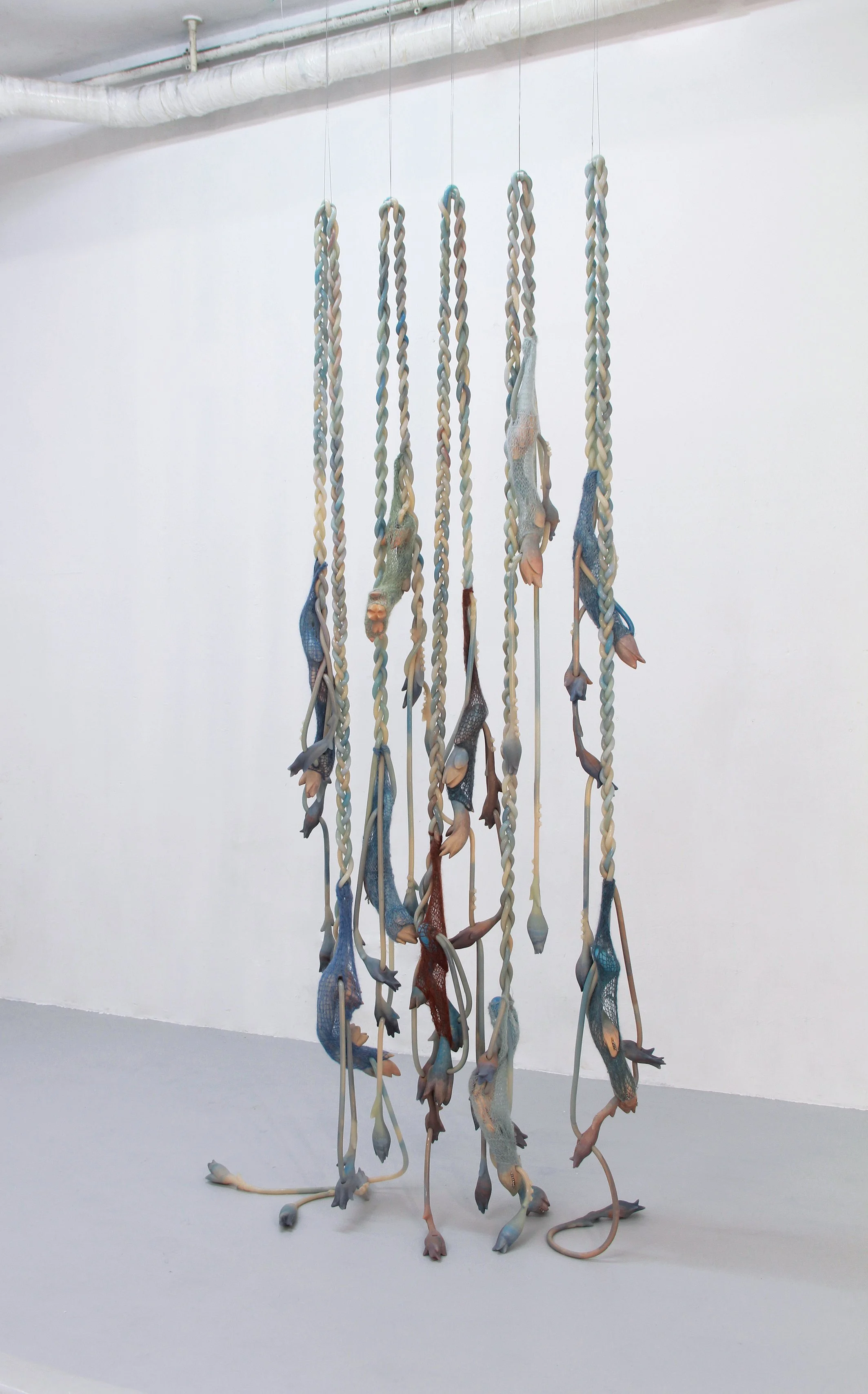 Dyed basswood, silicone, watercolor, acrylic, mohair, silk, agate beads, steel beads, shell, stainless steel